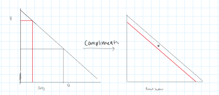 * if two items are complements if the demand for one increases then the demand for another will fall