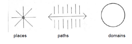 -Place and its environment = ‘places’, ‘paths’, ‘domains’ organised to form a hierarchy focused on a dominant centre.