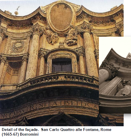 Contributions: Famous for his fluid facade designs, particularly in churches like San Carlo alle Quattro Fontane. Borromini's innovative style breaks away from conventional geometric forms, contributing significantly to the complexity and richness of Baroque architecture.
