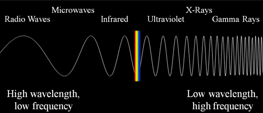 Dangerous variation is at the end of the spectrum, starting with going to a higher frequency and a lower wavelength, you get ultraviolet (UV), most commonly associated with sunburns