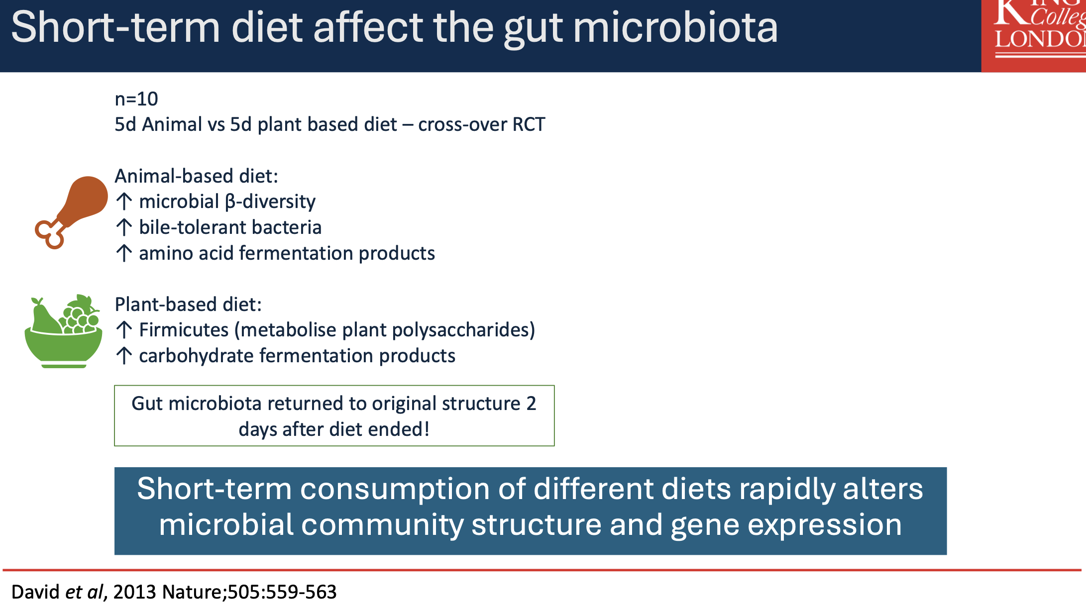Findings indicated gut microbiota returned to original structure within 2 days after diet cessation in a crossover randomized controlled trial comparing animal and plant-based diets.