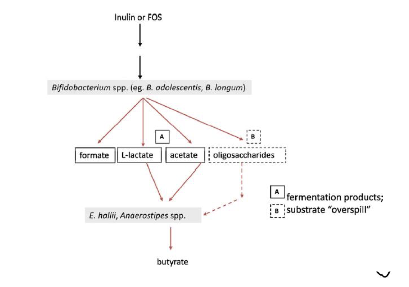 Promotes fermentation, stool bulking, and increases short-chain fatty acids (SCFA) like butyrate, propionate, acetate.