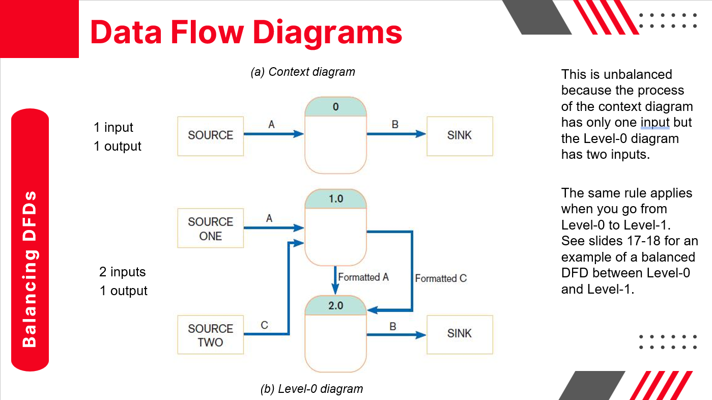 A Balanced DFD is one where the number of inputs an outputs match across all levels of the diagram.