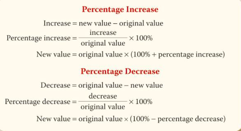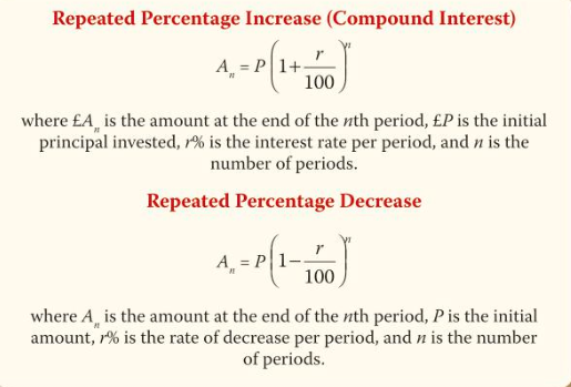 percentages - simple interest/reverse percentage /increase and decrease, repeated percentage change