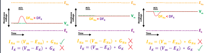Conclusion: For an ion channel with equal conductance for Na+ and K+, the ion with greater driving force will dominate current flow.