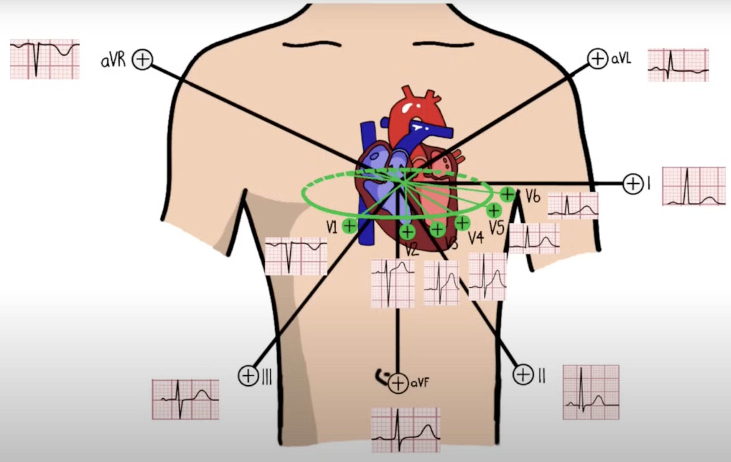 An ECG (electrocardiogram) is used to record the electrical activity of the heart from different angles.