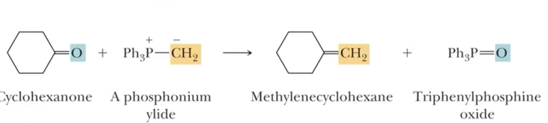 The process replaces oxygen in the carbonyl with a double bond to the alkyl component from the ylide.