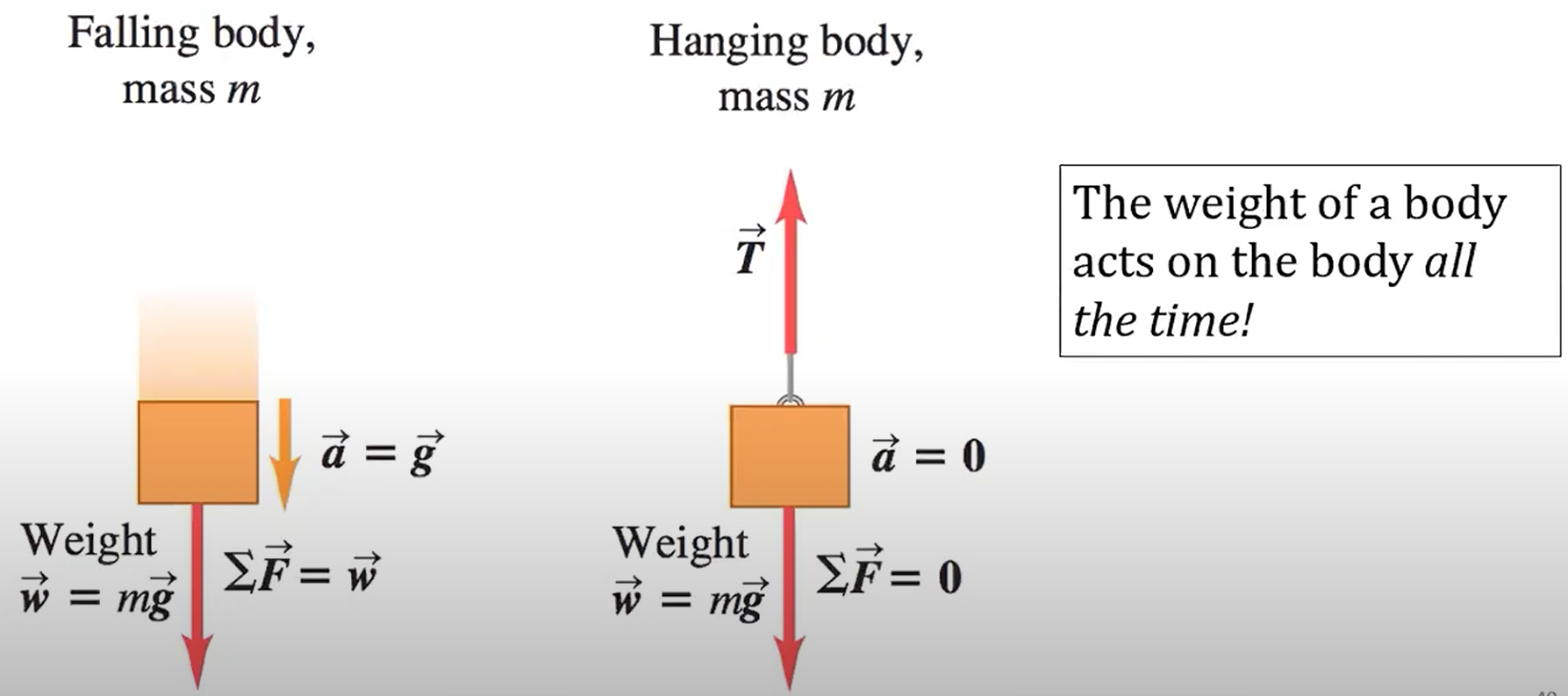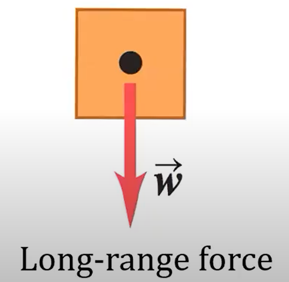 Weight, W: The pull of gravity on an object is a long-range force (a force that acts over a distance)