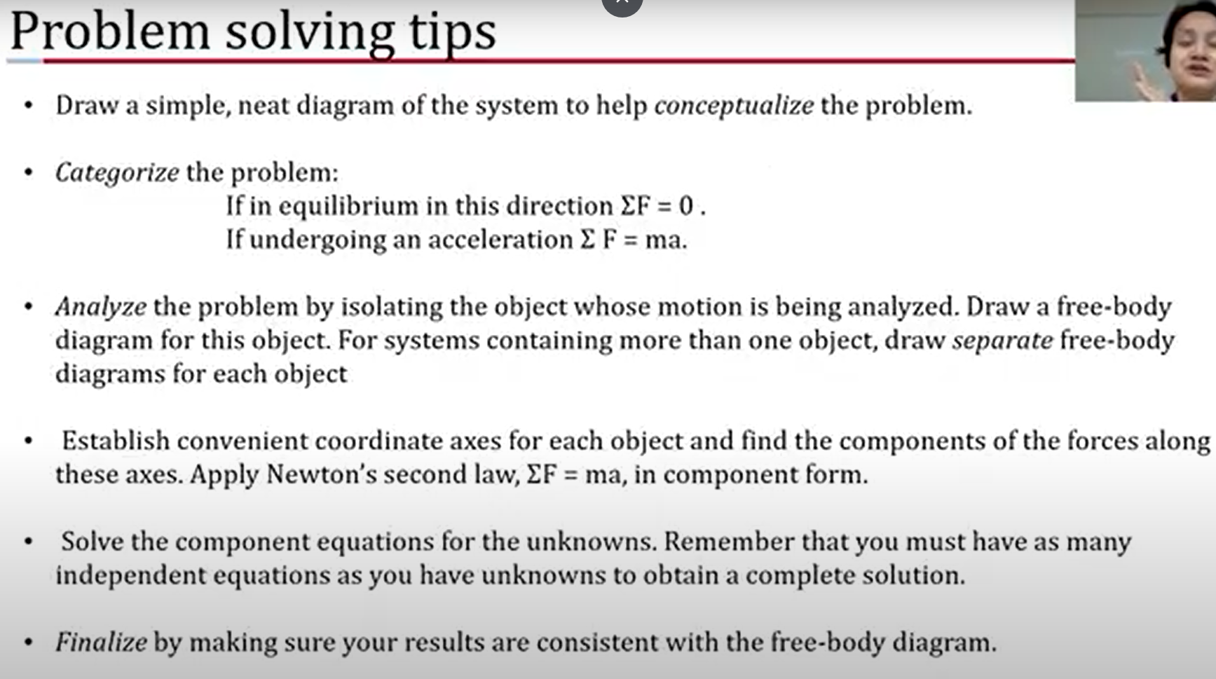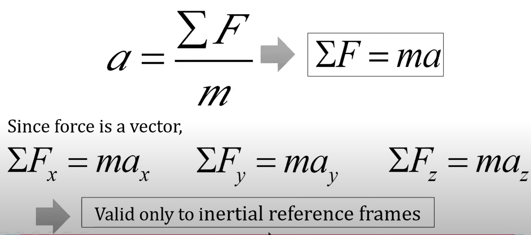 - Not in equilibrium: ∑F = ma