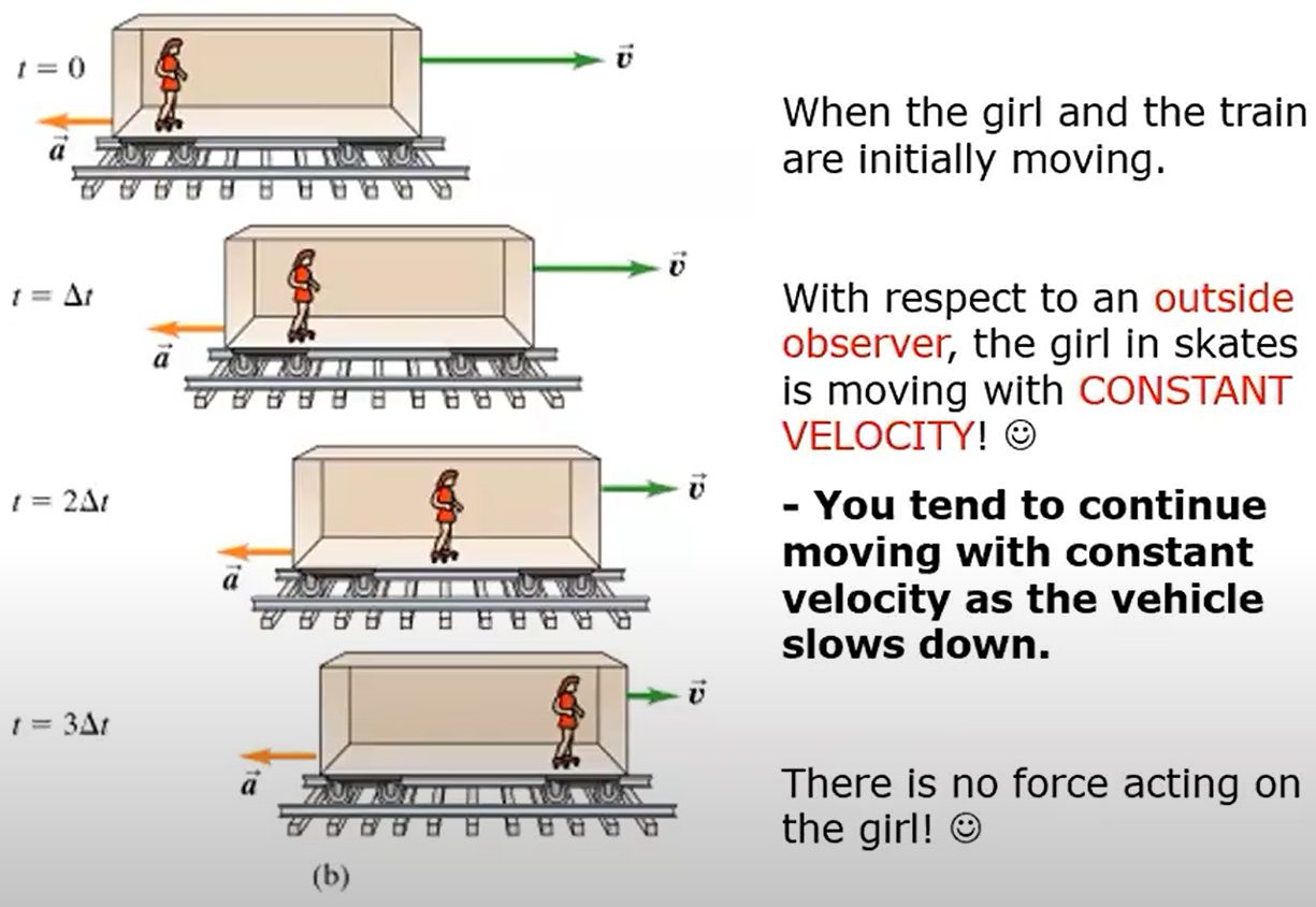 Before Galileo, it was thought that a force (such as a push or a pull) was needed to keep an object in constant velocity. Later, Newton recognized that slowing of objects in everyday experience is due to friction (a type of force).