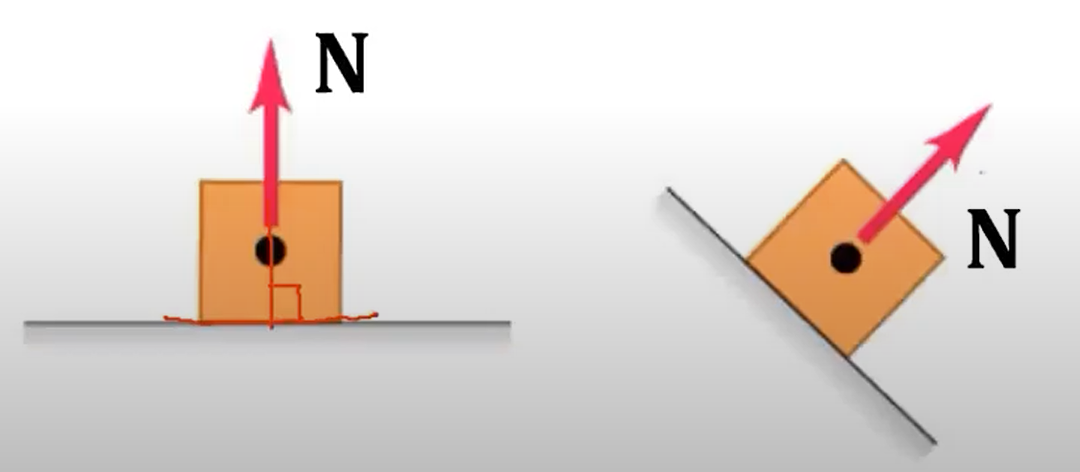 Normal force, N: When an object rests or pushes on a surface, the surface exerts a push on it that is directed perpendicular to the surface.
