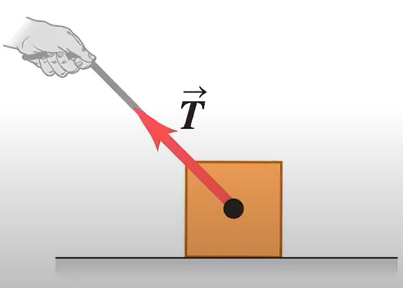 Tension, T: A pulling force exerted on an object by a rope, cord, etc.