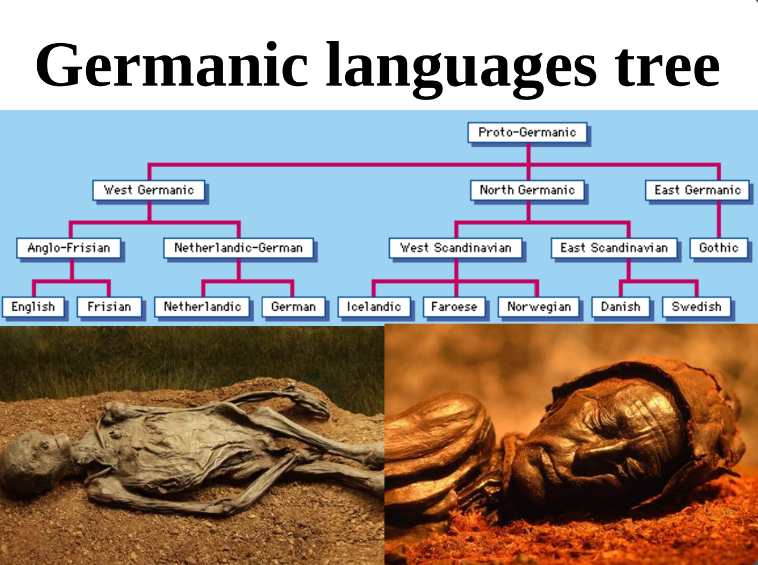 Vocabulary: Gmc includes many words without known cognates in other IE languages, likely borrowed from non-IE languages spoken in the Gmc region (e.g., broad, drink, drive, fowl, hold, meat, rain, wife).