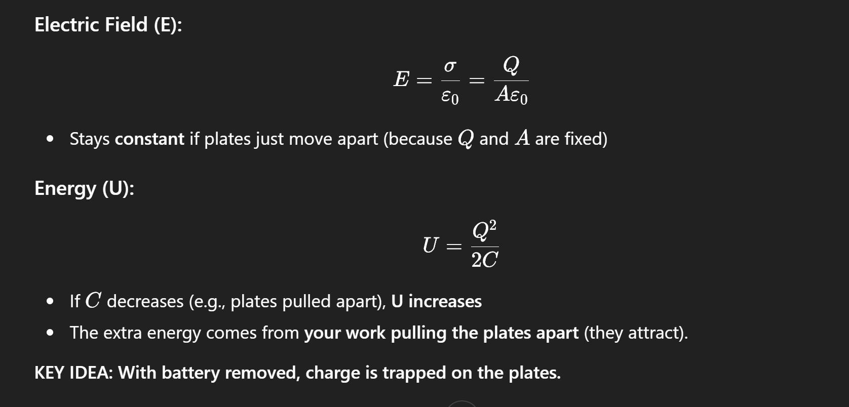 Isolated capacitor → CHARGE REMAINS CONSTANT, E field remains constant