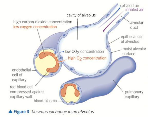 elastic tissues allow alveoli to stretch as air draws in. when return to resting they help squeeze air out - elastic recoil