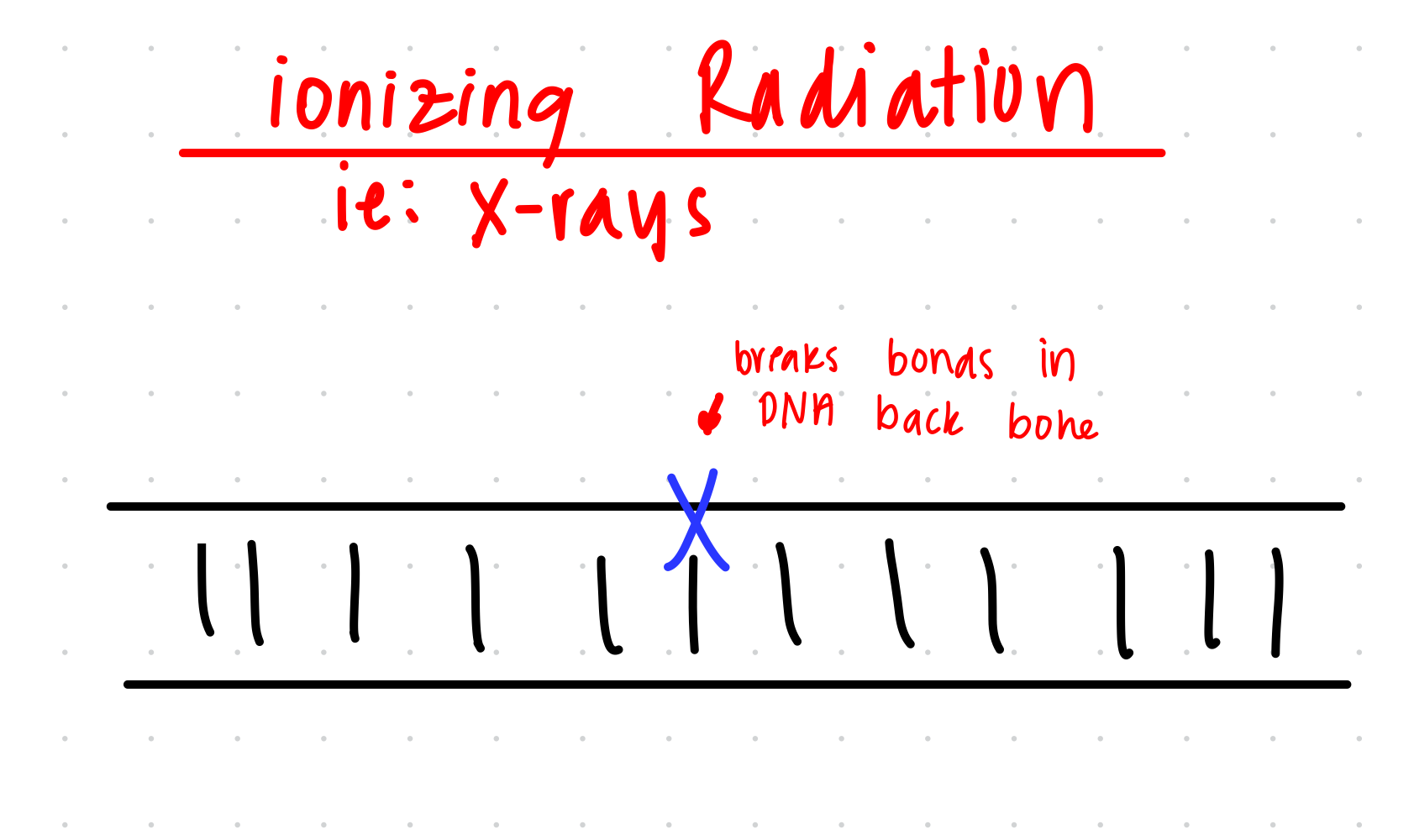 Ionizing Radiation (gamma rays and x-rays): Breaks DNA bonds