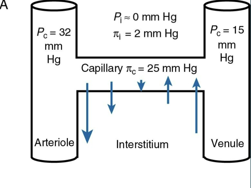 P = Hydrostatic Pressure (Pushing)- decreases as we move towards venule