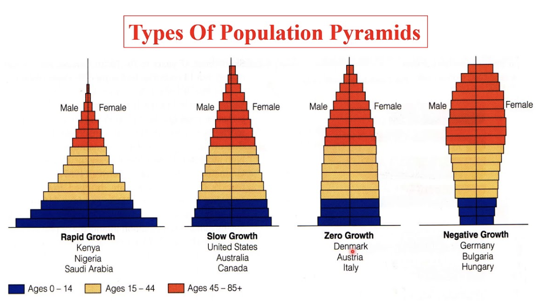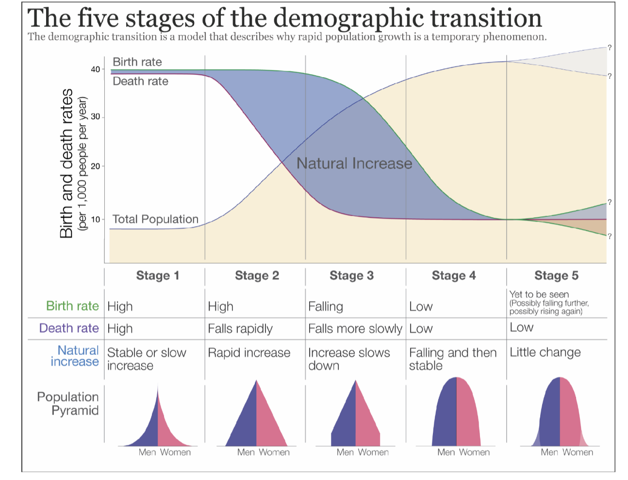 -Estimated Demographic Transitions-from high birth and death rates to lower birth and death rates due to improved living conditions and economic development.