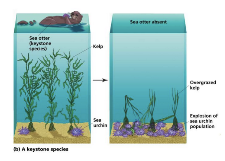 Diversity of a species within an ecosystem can influence the organization of said ecosystem. Keystone species have an enormous impact on the ecosystem, when the entire ecosystem collapses. Keystone species are not always the most abundant species in the ecosystem.