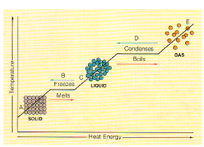 Particles move more quickly when heated because they have more energy. When particles are cooled they lose energy and move more slowly. Changes in the energy, and hence speed of movement, of particles leads to changes of state.