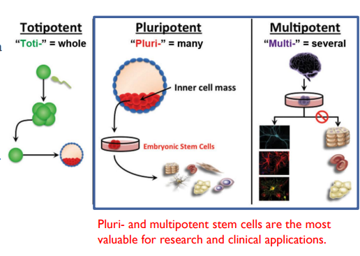 Pluripotent stem cells- Pluripotent stem cells can give rise to all three germ layers (mesoderm, endoderm and ectoderm) but not extraembryonic structures: e.g. embryonic stem cells. “Pluri” means many