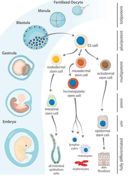 Stem cells- An undifferentiated cell that can divide to produce some offspring cells that continue as stem cells and some cells that are destined to differentiate (become specialized).