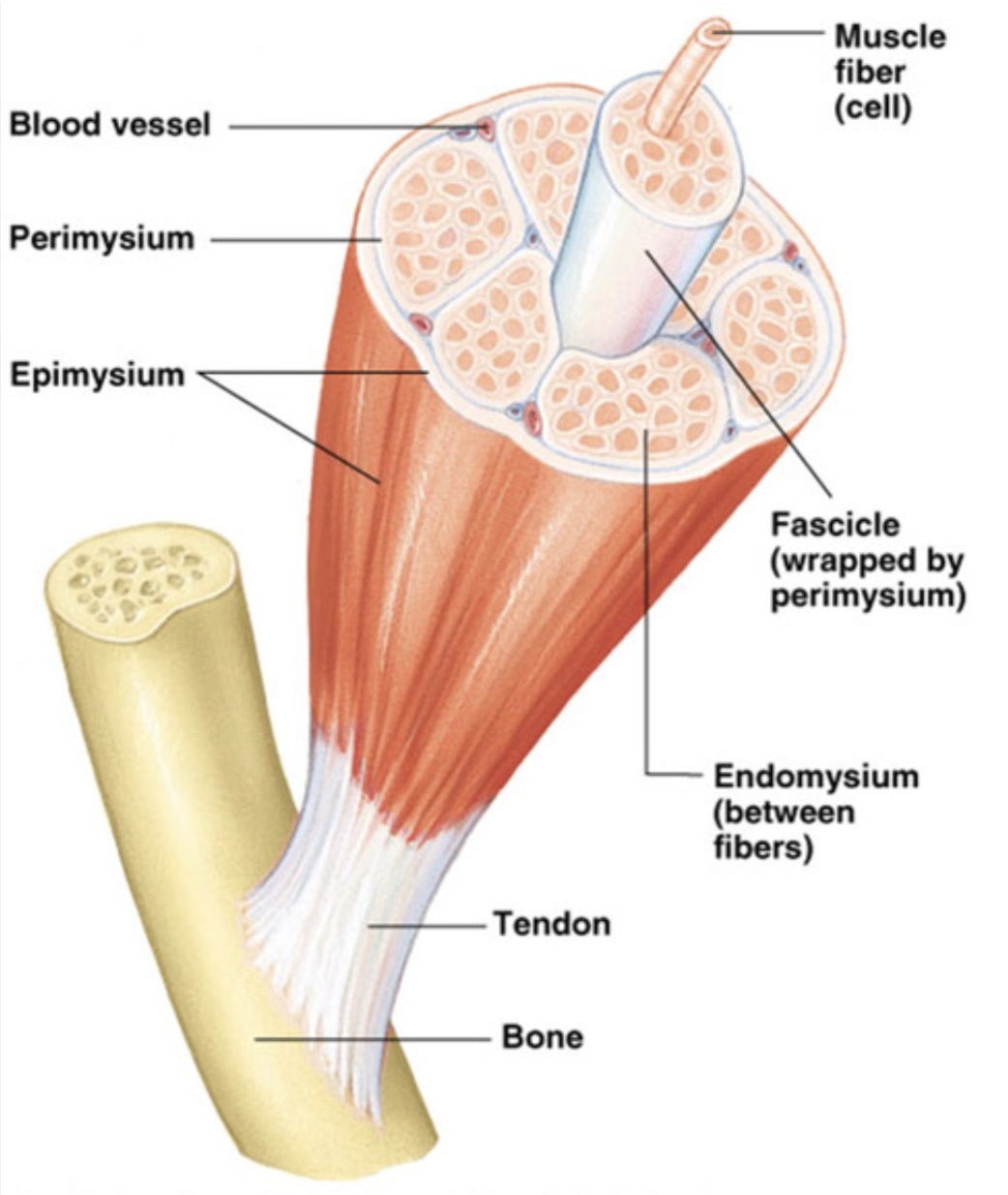 Perimysium - surrounds a bundle of muscle fibers (fascicle)