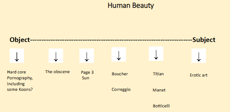 NOTE: Scruton only gives examples of female nudes, not male nudes, he only speaks of heterosexual erotic art (he is Christian), and that he only provides paintings and sculptures as examples, not anything photographic (unlike Nancy and Agamben)