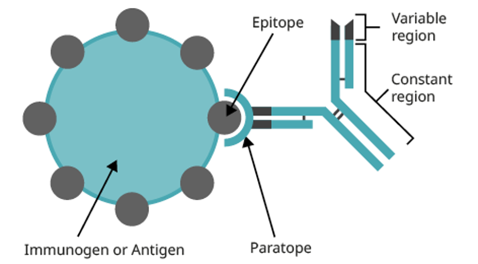 epitope = antigen combining site which the paratope is complementary to