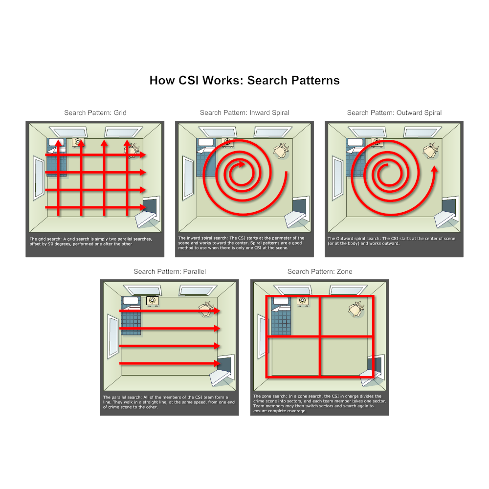 you snake through horizontally and then vertically, turn on the axis north and south, in the loops, so you're systematically covering every inch of the area to ensure no evidence is overlooked.