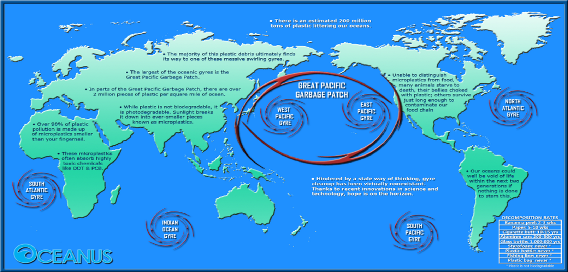 It is a gyre that is a spinning mas of water that accumulates plastic. Gryres are made from a convergence zone where warm water and cool water mix and create a circuit that accumulates trash in it.