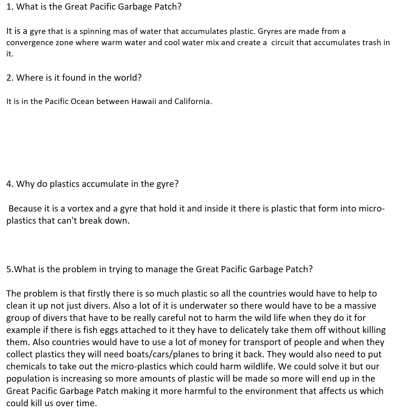 5.What is the problem in trying to manage the Great Pacific Garbage Patch?