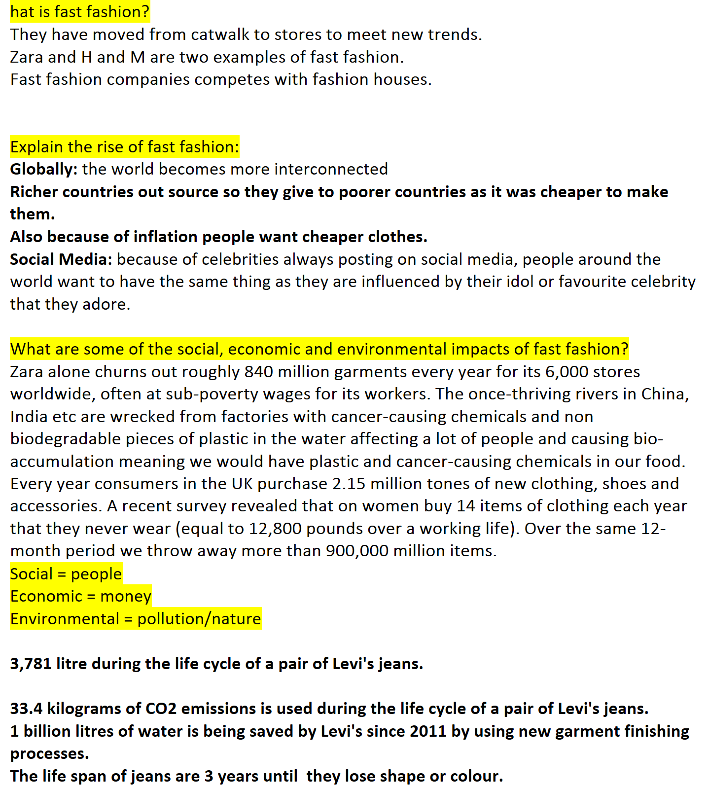 Zara alone churns out roughly 840 million garments every year for its 6,000 stores worldwide, often at sub-poverty wages for its workers. The once-thriving rivers in China, India etc are wrecked from factories with cancer-causing chemicals and non biodegradable pieces of plastic in the water affecting a lot of people and causing bio-accumulation meaning we would have plastic and cancer-causing chemicals in our food.