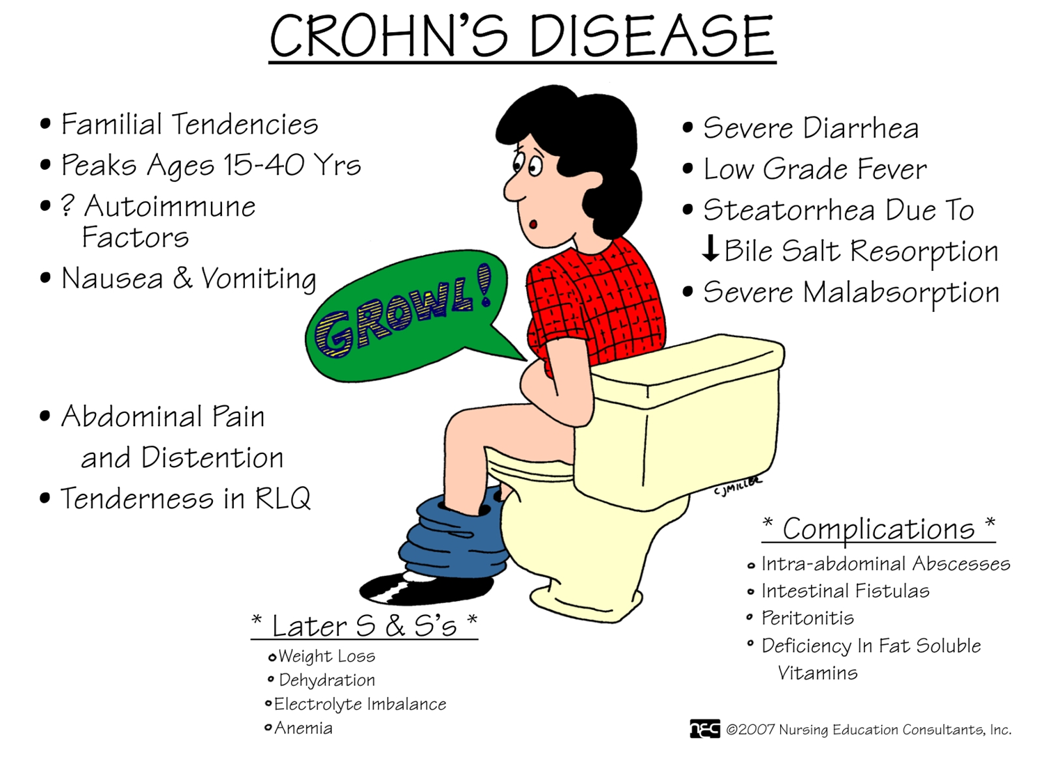 Avoided until complications such as bowel obstruction, perforation abscess and perianal occur.