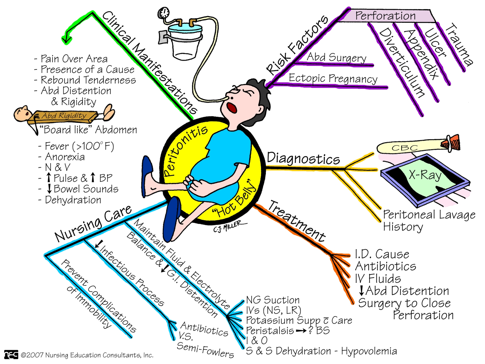 Megacolon - fecal mass that can obstruct the colon may lead to perforation of the colon and contents leak into the sterile peritoneal cavity (peritonitis)