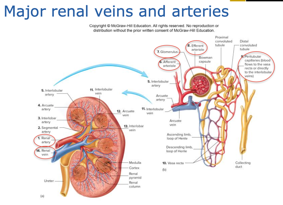 Renal artery: delivers oxygenated blood from heart to kidneys