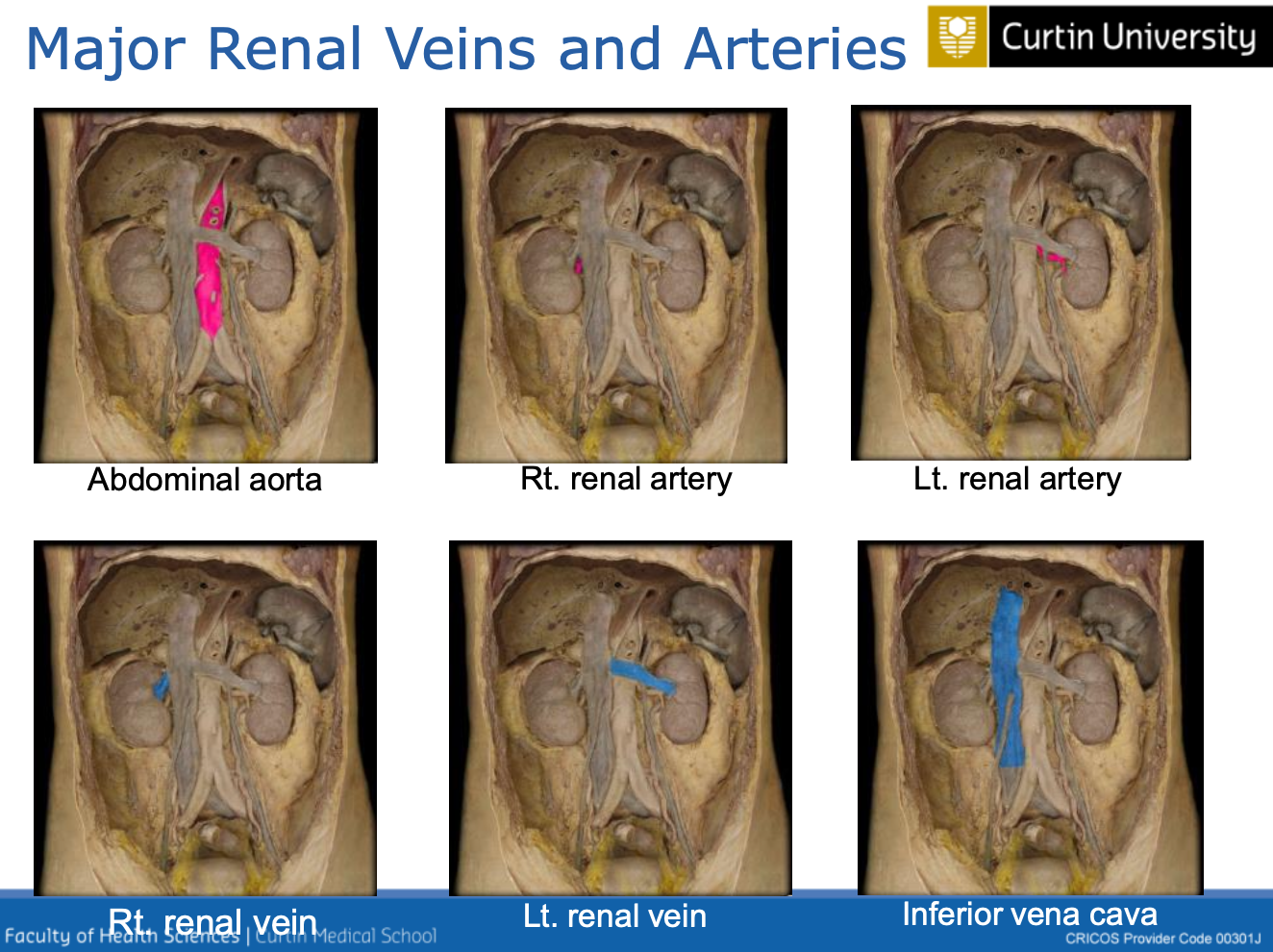 Renal vein: delivers deoxygenated away from kidneys and to the heart