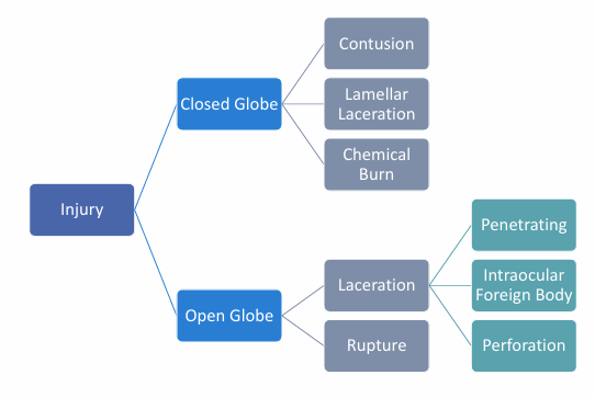 Closed Globe: No full-thickness wound of eye wall, but there is intraocular damage
