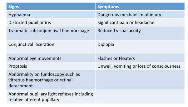 Red Flags in Eye Injury