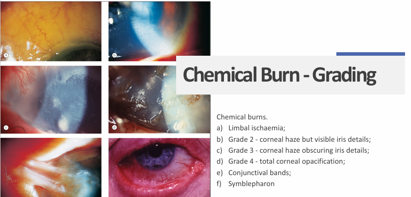 Chemical Trauma: acid, alkali, dye (salt)