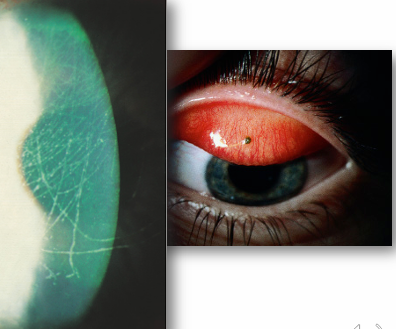 symptoms: pain, photophobia, tearing, lid and conjunctival swelling