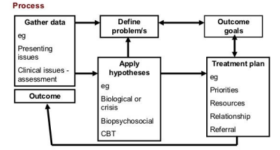 Continuous assessment of the effectiveness of an intervention and the client’s ongoing needs.