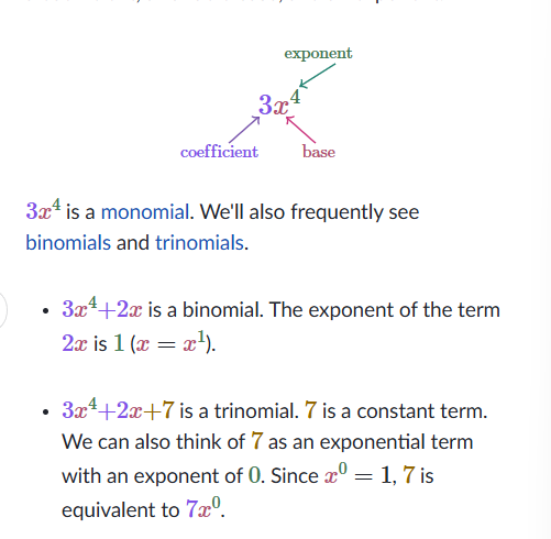 Binomial | Nhị thức | Biểu thức có hai số hạng (ví dụ: x+1). |