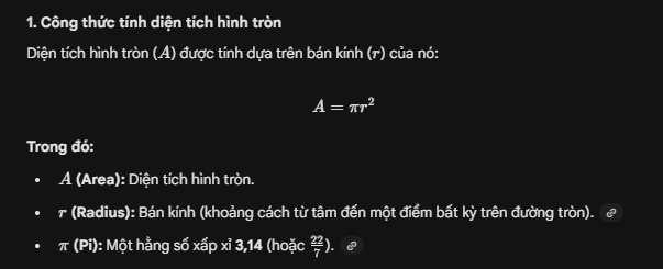 Sector area | Diện tích hình quạt | Một phần diện tích hình tròn (như miếng pizza). |