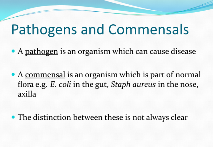 • Define the terms pathogen and commensal.