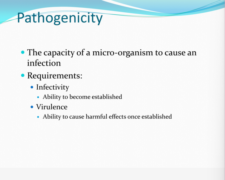 • Define pathogenicity and describe the concepts of infectivity and virulence