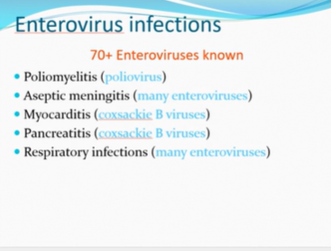 • Describe the features of enterovirus infection with the use of examples