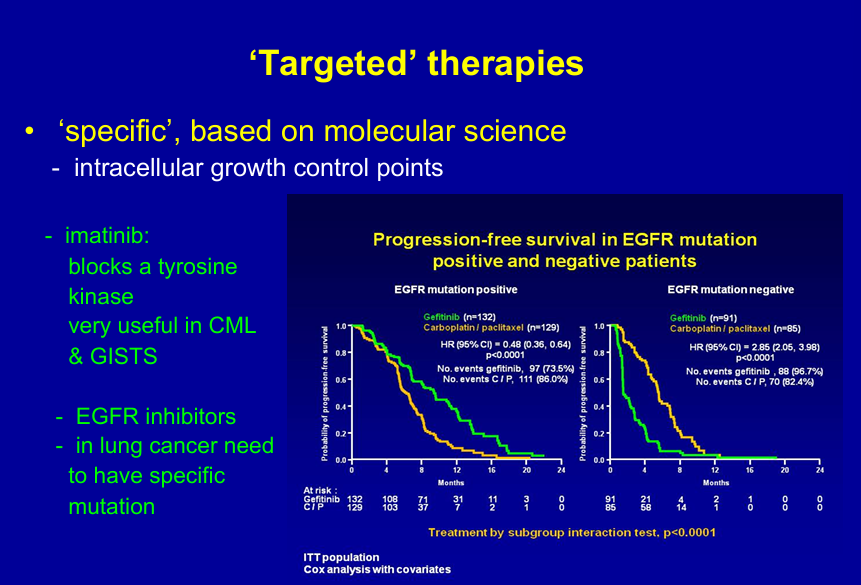 - targeted a tumour mutation : EGFR mutations & TKI agents