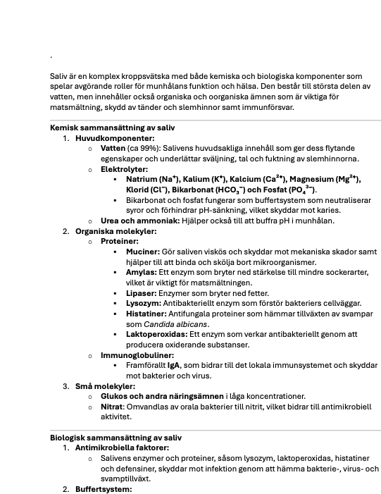 Biologisk sammansättning av saliv