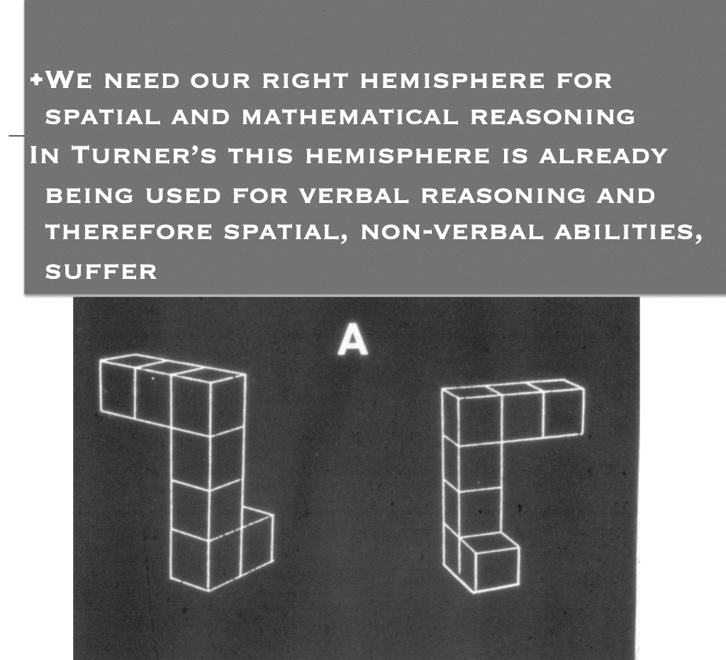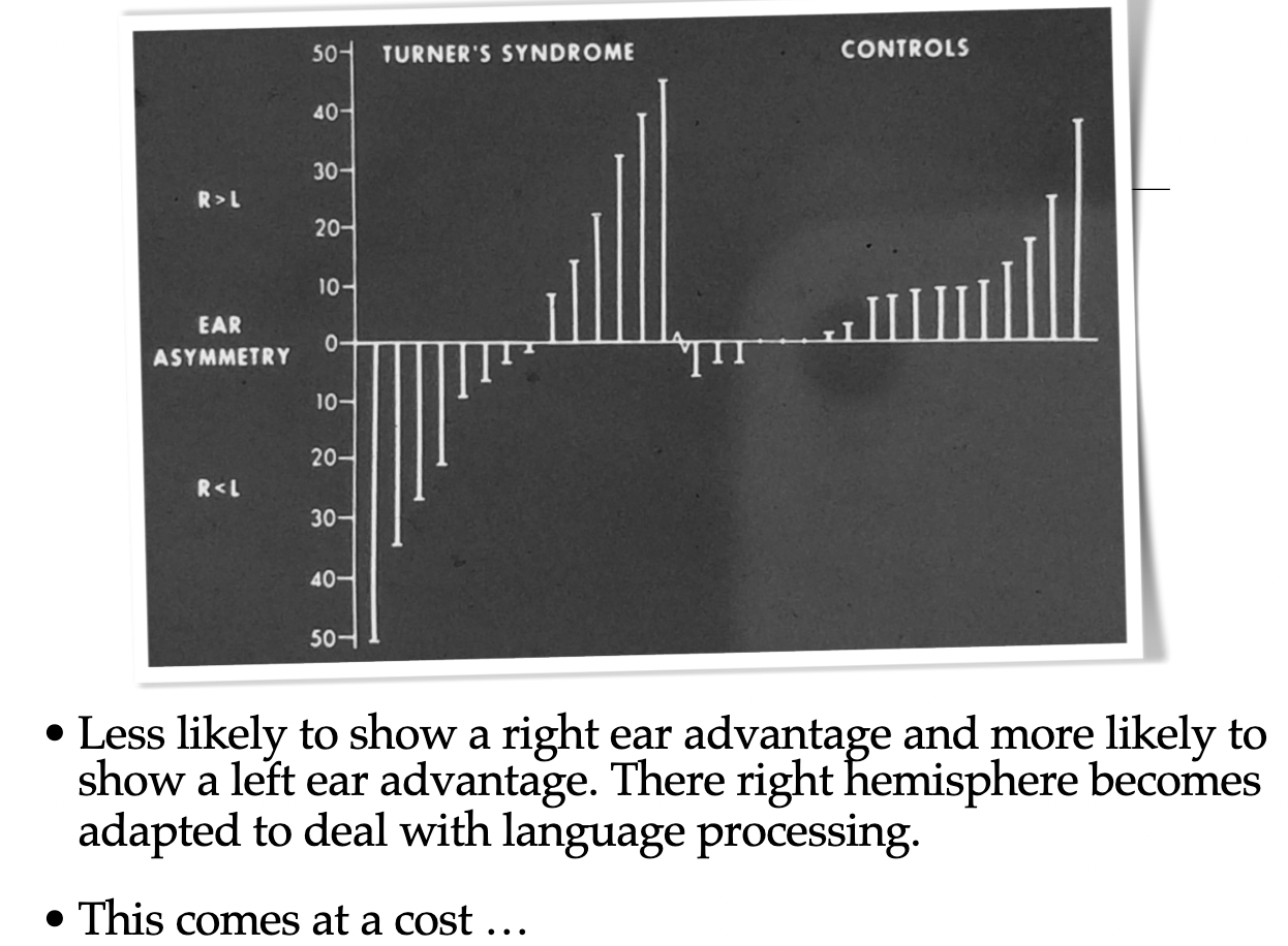 Hence, the language deficits are in Klinefelter’s but not Turner’s.